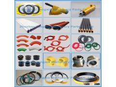 Concrete pump spare parts incuding : cabide spectacle wear plate and wear ring, s valve,chrome wear sleeve, complete upper housing, delivery cylinder, pipe, elbow ,piston, clamp coupling,hydraulic oil cylinder etc.